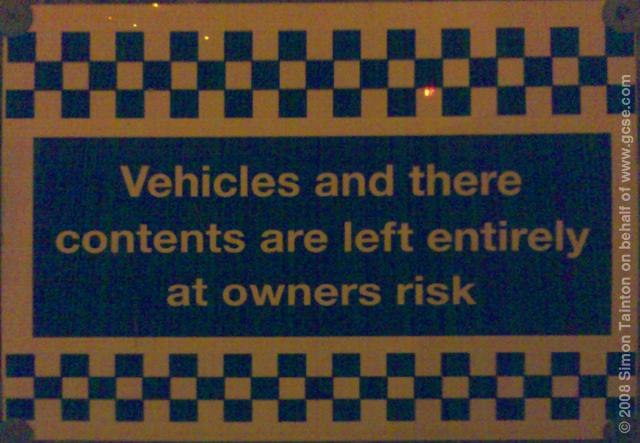 In this example the word there takes two subtly different meanings. QUESTION: Can you see what's wrong with the wording in the photo above?
