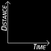 Time always runs horizontally (the x-axis). The arrow shows the direction of time. The further to the right, the longer time from the start. Distance runs vertically (the y-axis). The higher up the graph we go, the further we are from the start.