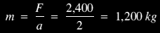 A car engine provides a force of 2·4 kN. This gives it an acceleration of 2 m/s². This is how we find the vehicle's mass: