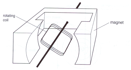 It provides businesses and homes with electricity. (a) Explain why power is transmitted at high voltage. [2] (b) The large generators in power stations are different in structure and operation from the simple model generator shown in the diagram.